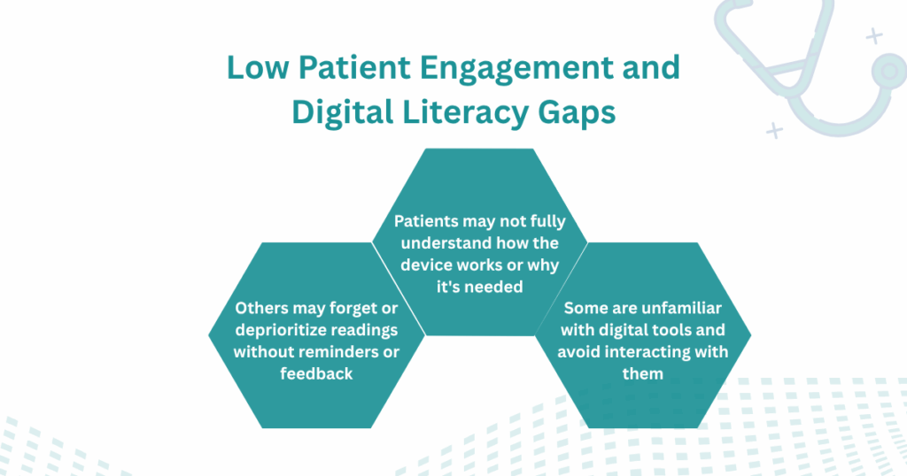 - Low patient engagement and digital literacy gaps